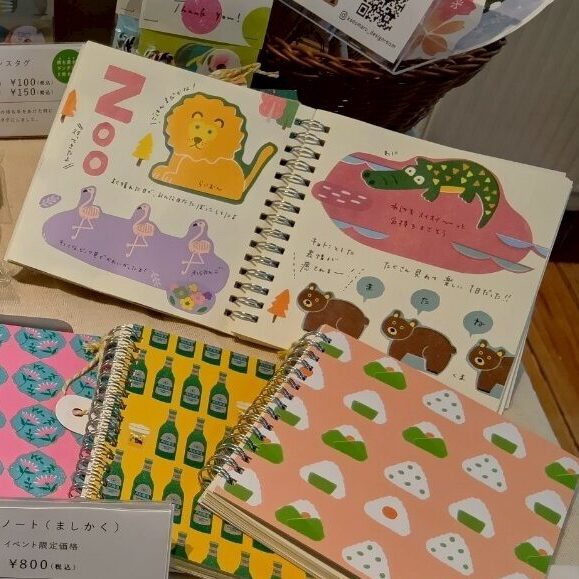 スタッフがカドマル商品で作ったコラージュノートを持っていってみました。